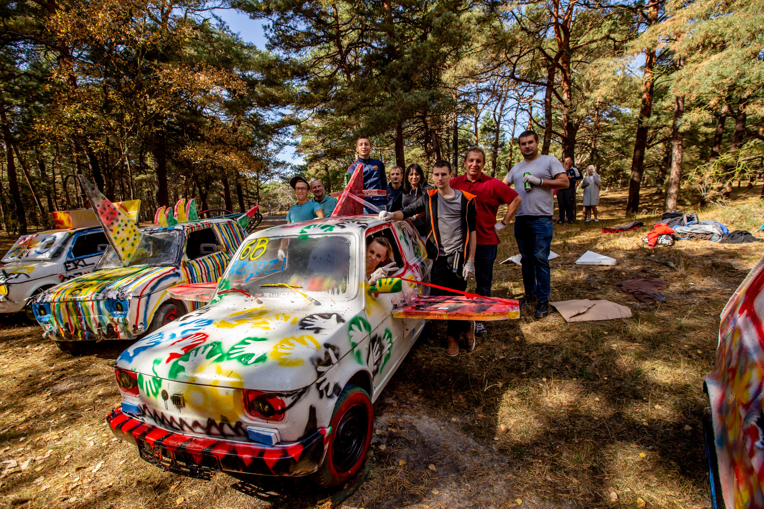 Początkowo cała grupa bierze udział w konkurencjach, które pozwolą zarobić szogundolary potrzebne w dalszej części zabawy. Po przejściu wszystkich rywalizacji zapraszamy Państwa do sklepiku, w którym każdy zespół będzie mógł kupić materiały potrzebne do odpicowania auta (elementy wyposażenia, taśmy, farby, folie, kartony, styropian, kolorowe arkusze). Następnie każda drużyna otrzymuje jednego MALUCHA – Fiata 126p, którego będzie mogła odpicować. Kiedy wszystkie drużyny będą już gotowe następuje WIELKI FINAŁ – wybór najlepiej przerobionej bryki oraz wyścig pchaczy.